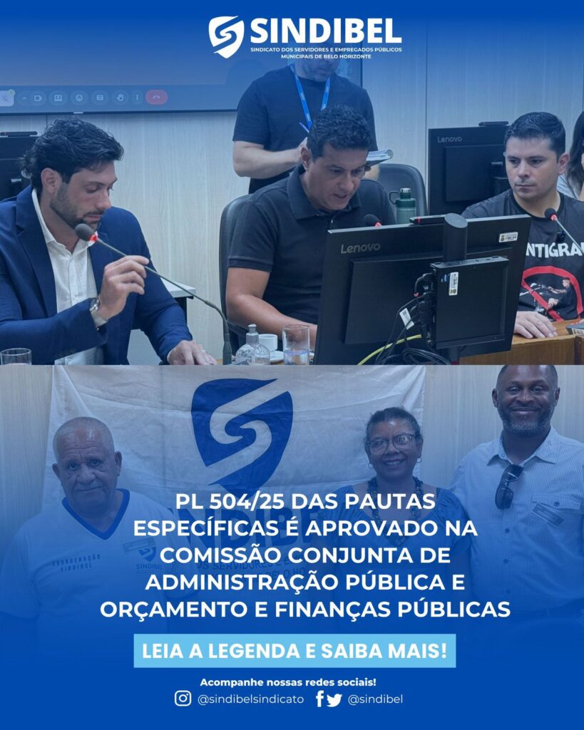 Nesta terça-feira (07/10) o projeto de lei 504/25 que prevê as pautas específicas de cada categoria dos Servidores Públicos de Belo Horizonte, foi aprovado na comissão conjunta de administração pública e orçamento e finanças públicas.