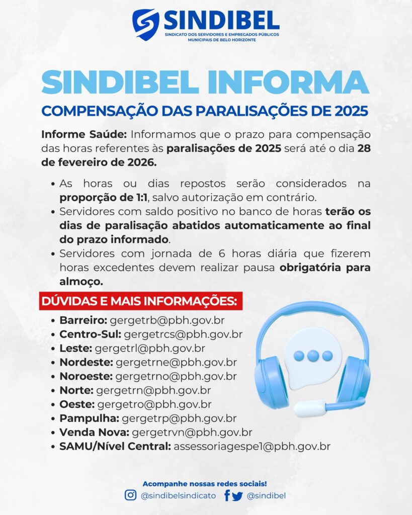 📢 O prazo para compensar as horas referentes às paralisações de 2025 vai até 28 de fevereiro de 2026.