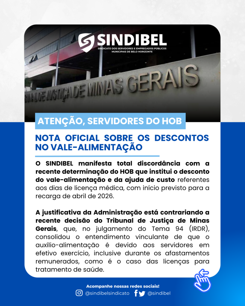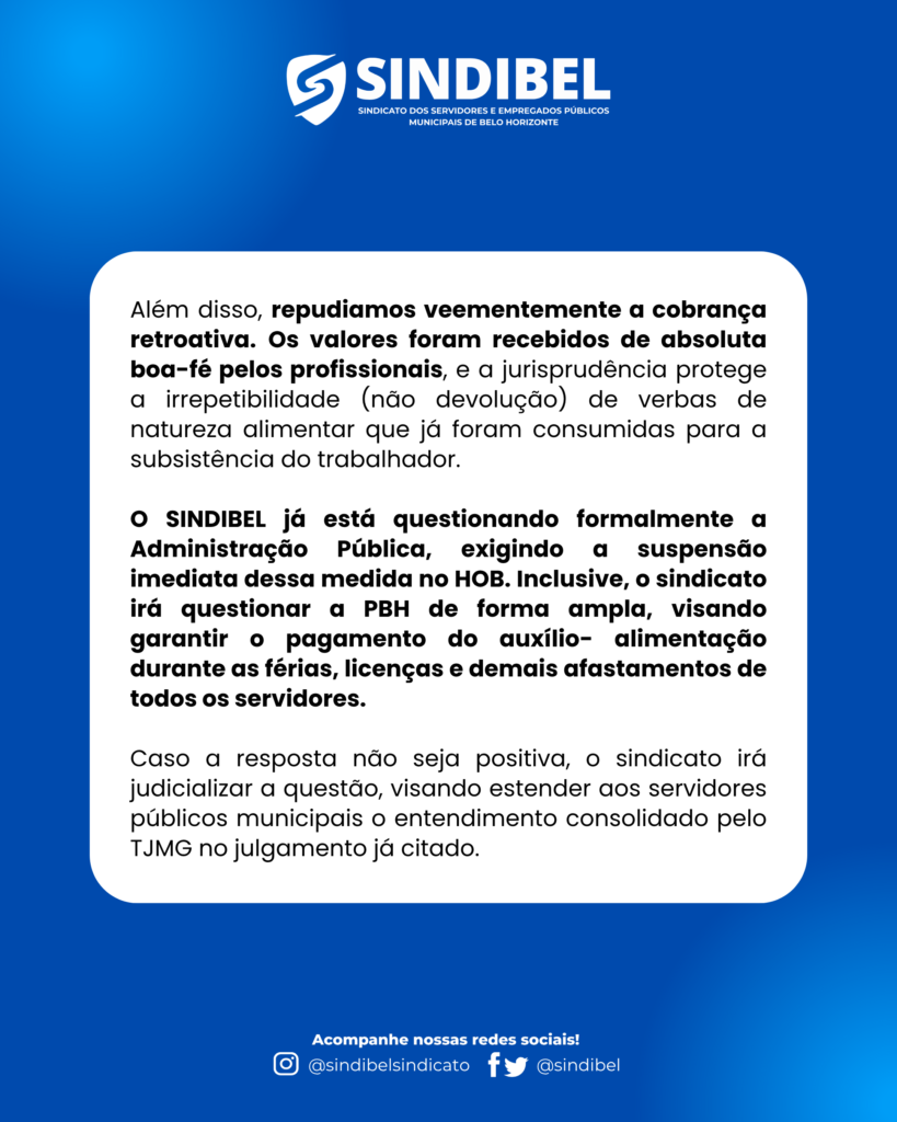 O SINDIBEL é contra os descontos no vale-alimentação durante licenças médicas e qualquer cobrança retroativa.